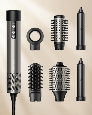 Air styler multifonction doté de 6 accessoires interchangeables.
