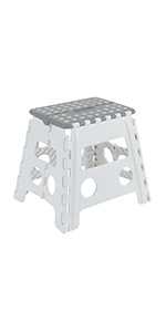 Avec des points en caoutchouc antidérapants sur la surface afin de minimiser le risque de glissades et de chutes. Il possède des patins antidérapants à la base de chaque pied pour une plus grande adhérence au sol. Le tabouret est très léger et une fois plié, la poignée permet de le transporter facilement.