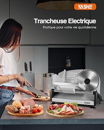 YASHE - trancheuse électrique 250W, lames 19cm, épaisseur réglable