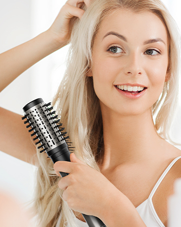 - Accessoires 6 : sèche-cheveux, 2 boucleurs, 1 brosse lissante, 2 brosses soufflantes
