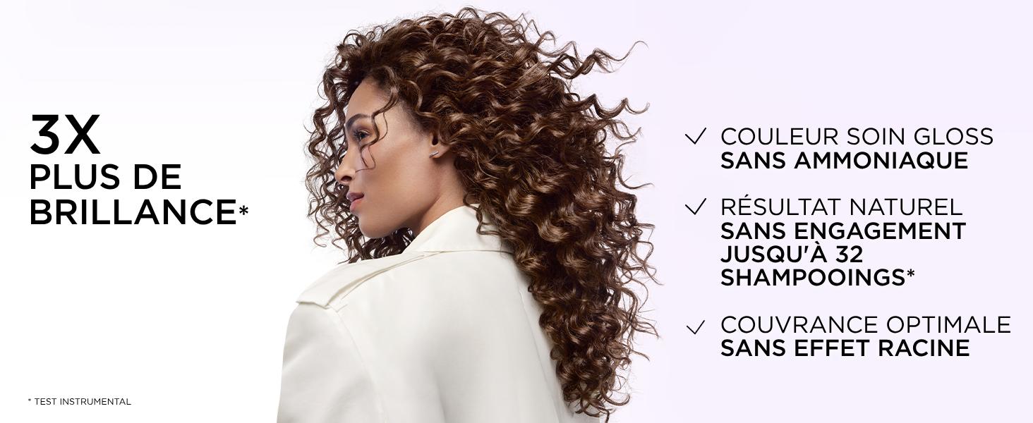 Cheveux 3x plus brillants et 4x plus soyeux (test instrumental).
