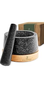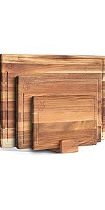 Lames en granit, poignées en acier inoxydable et bloc en bois d’acacia pour un ensemble haut de gamme et durable.