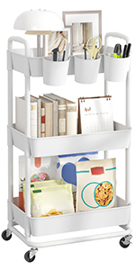 JIUYOTREE - Chariot 4 niveaux - roulettes verrouillables, poignées, gobelets suspendus, blanc