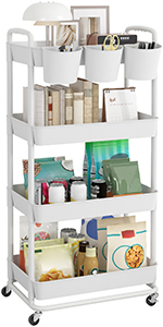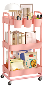 JIUYOTREE - chariot de rangement 4 niveaux, poignées, roulettes, gobelets, rose - JIUYOTREE