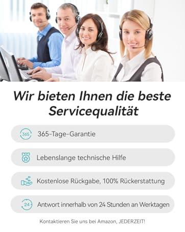 30 jours remboursé, 12 mois de garantie, support technique 365 jours.