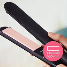 Les plaques longues de 100 mm permettent un meilleur contact avec les cheveux et vous aident à obtenir un résultat parfaitement lisse plus facilement et plus rapidement.