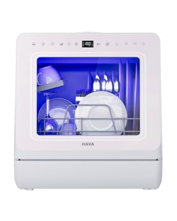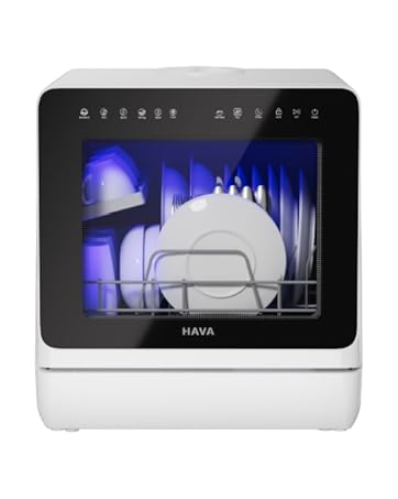 HAVA - lave-vaisselle compact série 2025 - efficace, 8 programmes, adoucisseur, verrou enfant, démarrage différé