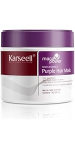 Karseell Violet Masque Cheveux Neutralise Les Reflets Jaunes, Répare Les Cheveux Abîmés, pour Cheveux Blonds, Platine, Blancs Ou Gris, 500ml