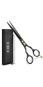 Acier inoxydable 6CR durable, plaqué noir titane, d'une bonne dureté et d'un bon tranchant. CIICII lame des ciseaux est polie à la main, le bord des ciseaux est régulier et lisse pour que les ciseaux soient bien aiguisés.
