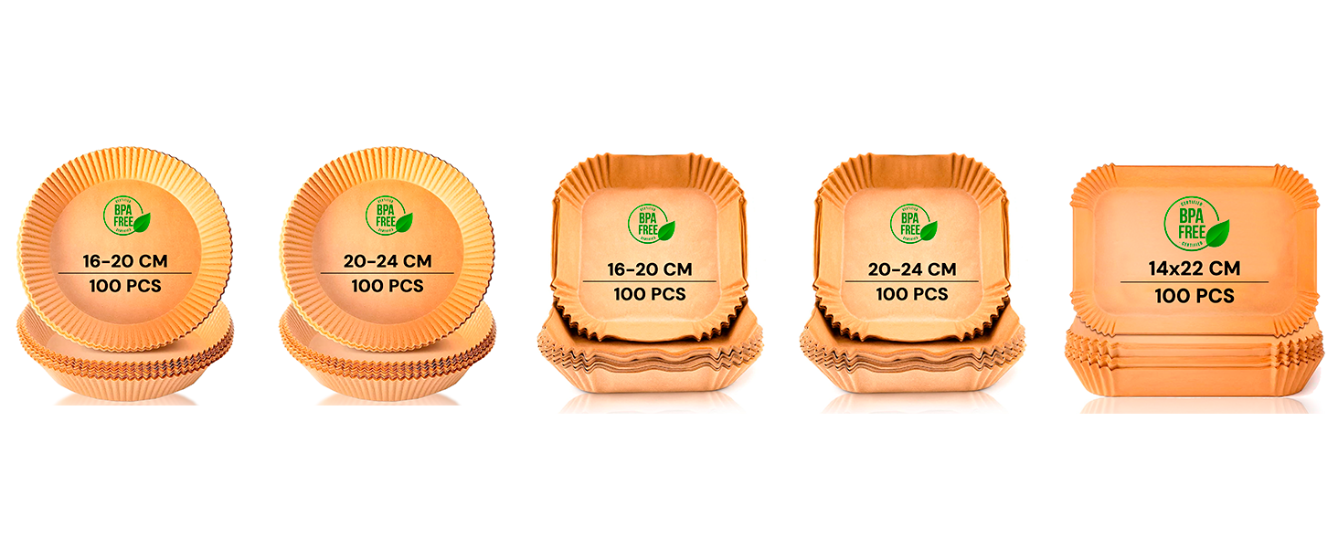 edihome - Papier Cuisson Air Fryer - 16-20 cm - 100 unités, jetable, BPA free