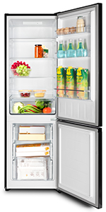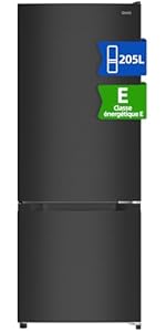 Espace de stockage : 187 L réfrigérateur et 75 L congélateur.