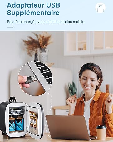 FOHERE - Mini Frigo 5L - compact 6 canettes, AC/DC, cosmétiques, bureau