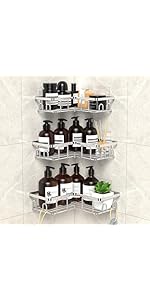 Organiseur de salle de bain pratique en 3 pièces, idéal pour savon, gel douche, shampoing. Tout reste propre et bien rangé.