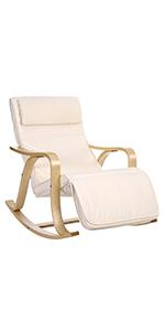 SONGMICS Fauteuil à bascule en bois de bouleau, Chaise berçante avec repose-pied réglable sur 5