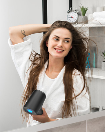 Système de séchage rapide : moteur brushless ultra-puissant, 2 vitesses de souffle, et contrôle thermique intelligent.