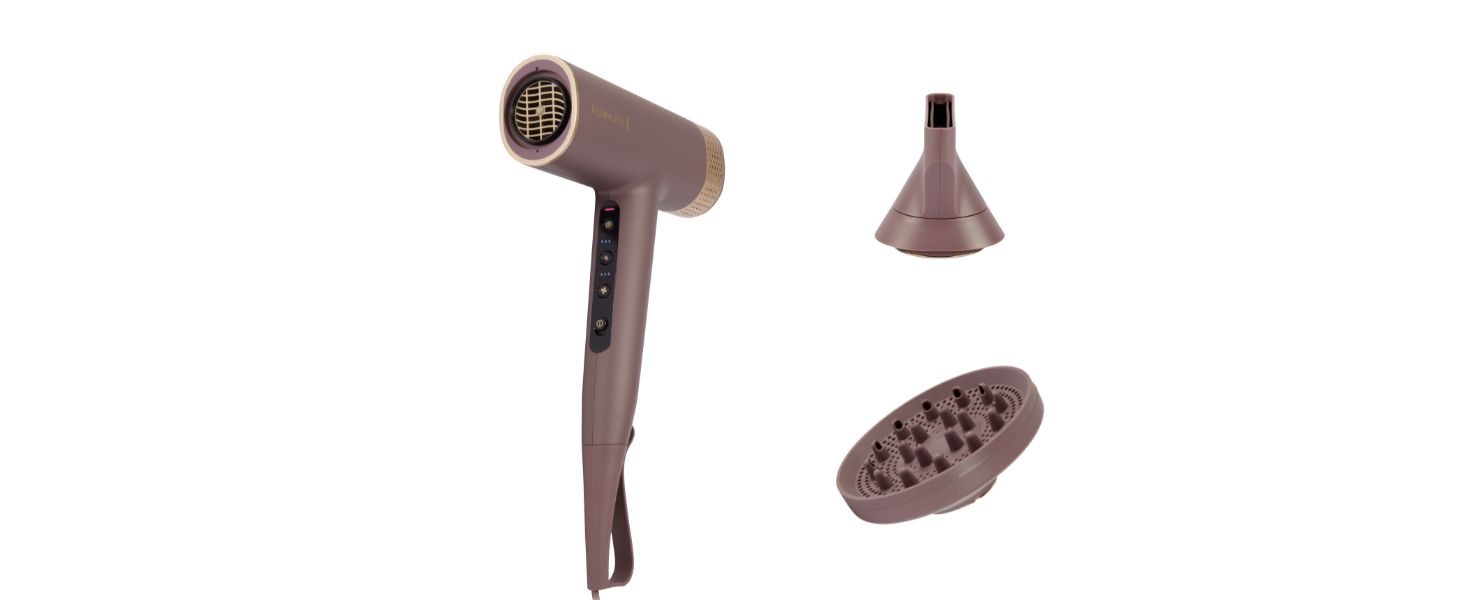 Deux accessoires de coiffage sont inclus : un concentrateur fin et un diffuseur pour définir les boucles.