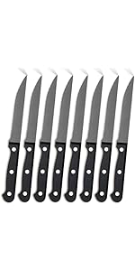 Vous pouvez facilement transformer tous les types de viande, comme le steak, le steak de poulet et la côtelette de porc. Il peut également être utilisé pour les tomates, les pommes de terre et d'autres légumes. Cet ensemble de couteaux à steak est également le cadeau pour un mariage, un anniversaire, une pendaison de crémaillère et de nombreuses vacances, telles que Noël, Thanksgiving, etc.